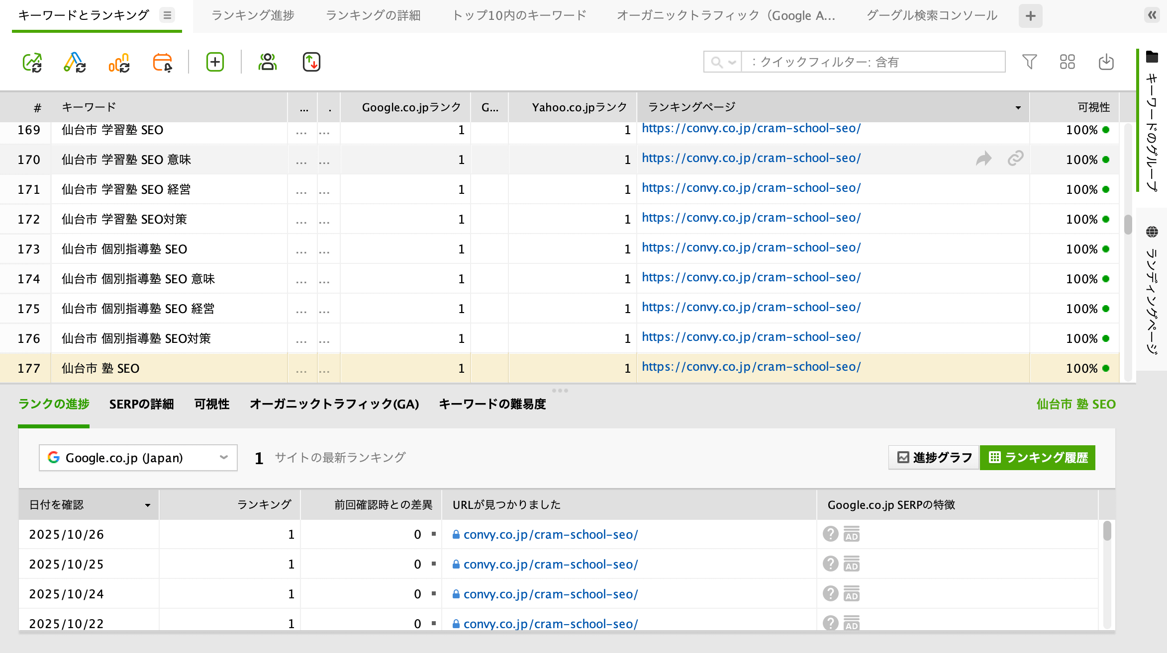 CONVY実績:「塾 SEO 仙台」「SEOコンサルティング 仙台市」で上位表示